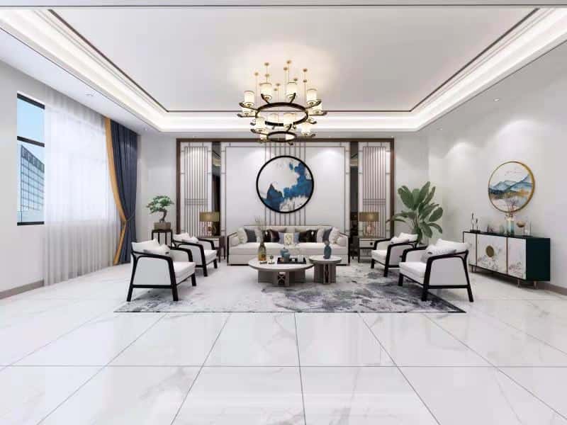 會(huì)客室,新中式風(fēng)格盡顯典雅,山水掛畫、中式家具與現(xiàn)代元素融合,吊燈提升空間格調(diào),營(yíng)造舒適洽談氛圍。