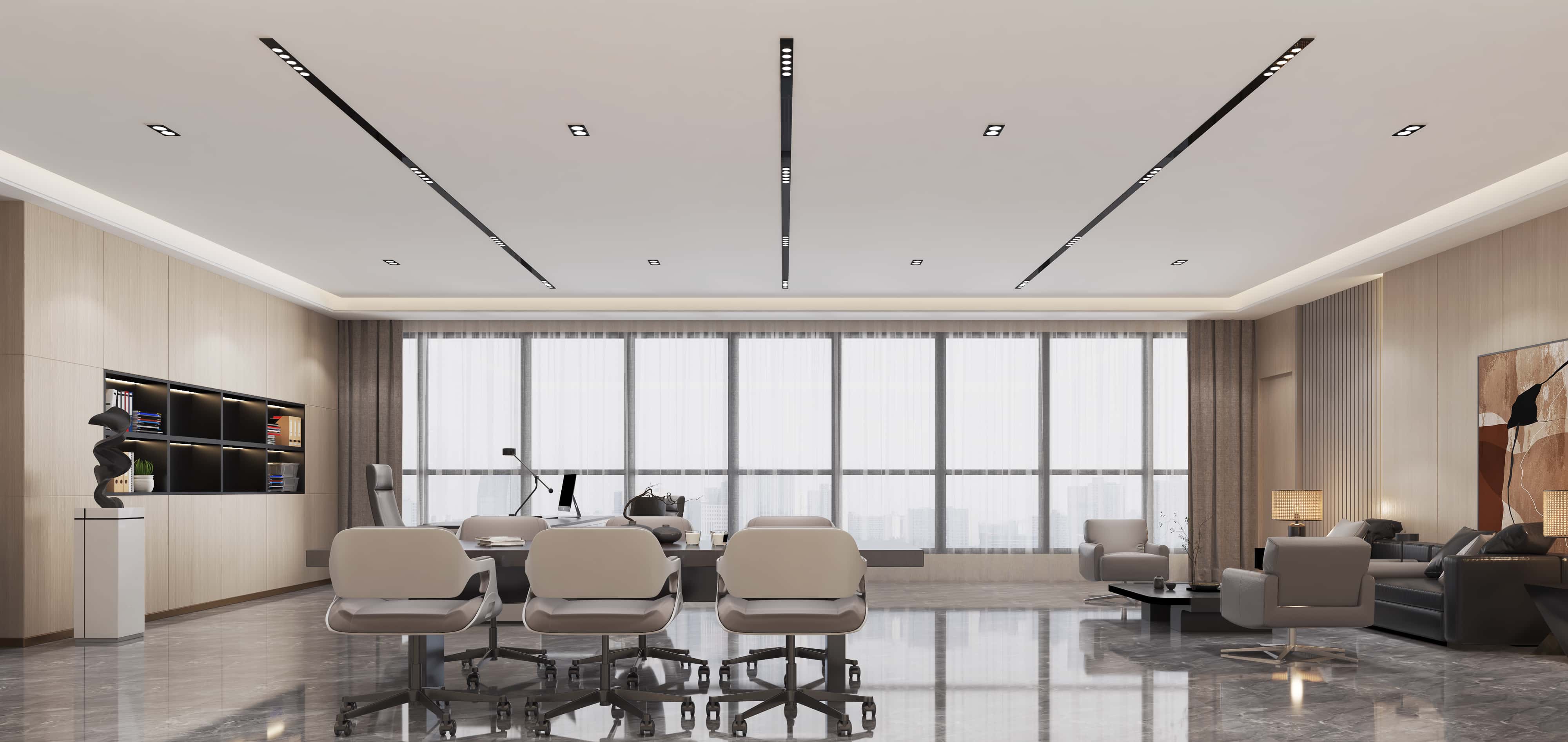 整體設(shè)計通過材質(zhì)、色彩與燈光的巧妙搭配,營造出功能齊全、風(fēng)格鮮明且舒適宜人的辦公環(huán)境。