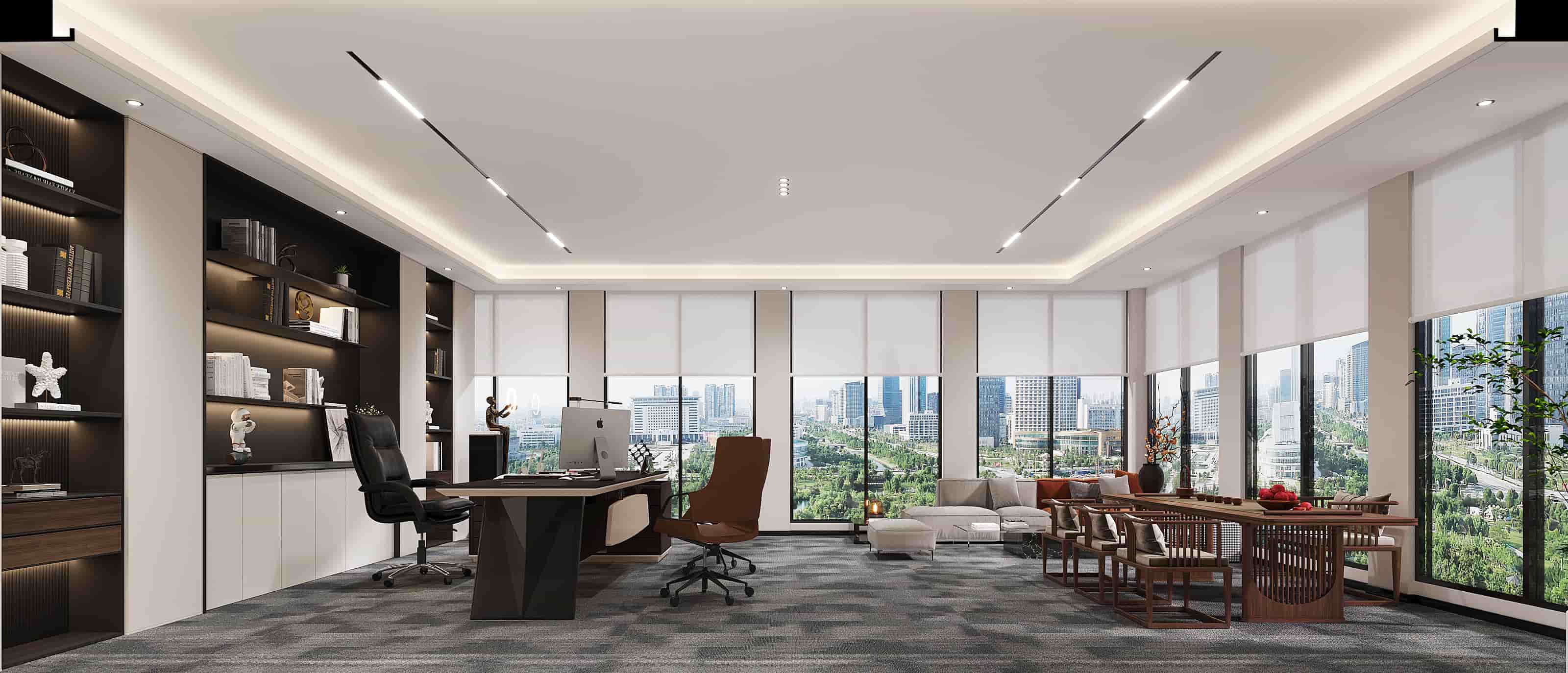 本設(shè)計(jì)為一現(xiàn)代辦公空間,整體風(fēng)格簡(jiǎn)約而富有活力。