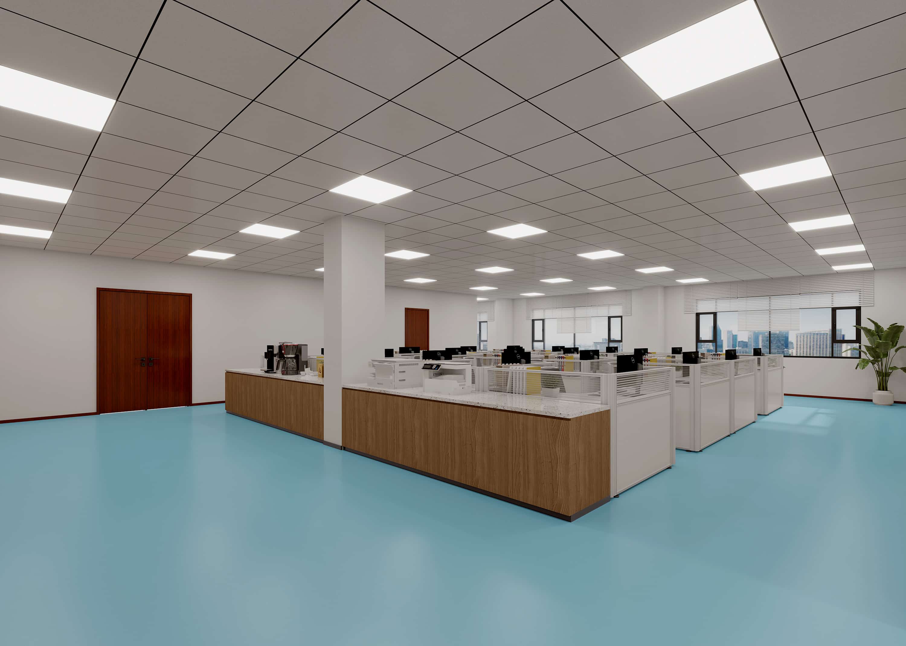 前臺區(qū)域,白色墻面搭配弧形玻璃背景墻,簡潔大氣,公司標(biāo)識醒目,彰顯企業(yè)形象。地面采用淺藍(lán)色,增添空間活力。辦公區(qū),白色天花板與墻面營造明亮氛圍,木質(zhì)隔斷與辦公桌增添溫馨感,綠植點(diǎn)綴生機(jī)盎然。休息區(qū),棕色沙發(fā)搭配簡約茶幾,提供舒適放松空間。整體設(shè)計(jì)注重空間利用與色彩搭配,通過簡潔線條與現(xiàn)代元素,創(chuàng)造一個(gè)高效、舒適且能激發(fā)員工創(chuàng)造力的辦公環(huán)境。