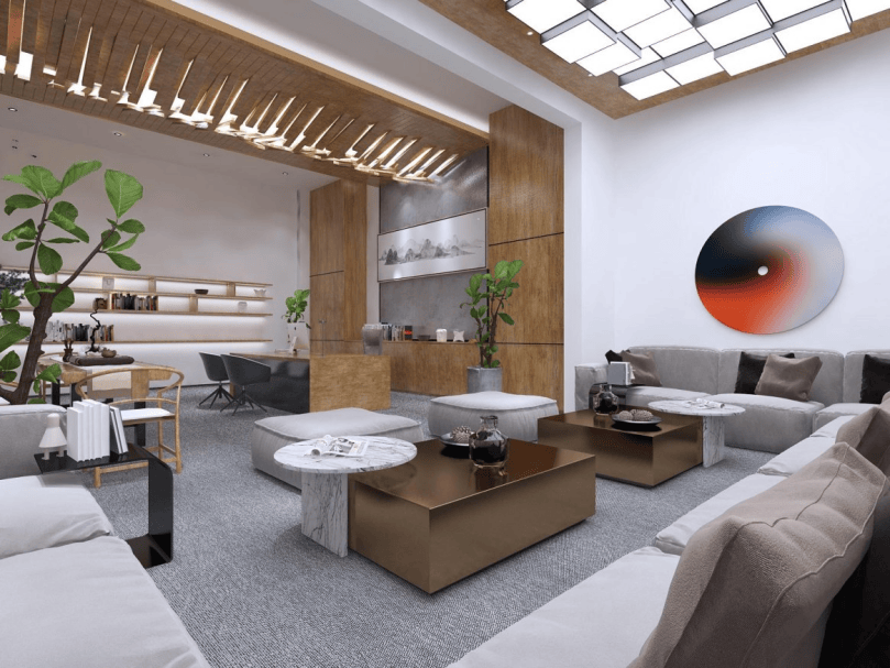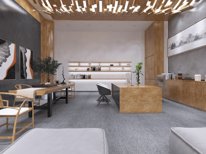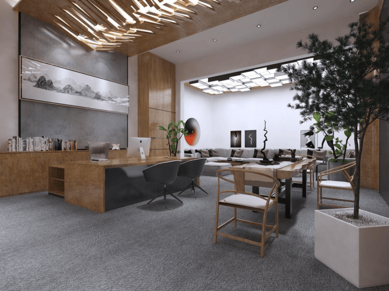 接待區(qū),獨(dú)特的木質(zhì)裝飾墻與綠植點(diǎn)綴,展現(xiàn)自然生機(jī)。辦公區(qū),開放式布局搭配靈活的家具,滿足不同辦公需求。會(huì)議室,木質(zhì)桌椅與現(xiàn)代燈具結(jié)合,營(yíng)造專業(yè)氛圍。休閑區(qū),舒適的沙發(fā)搭配藝術(shù)裝飾,為員工提供放松空間。