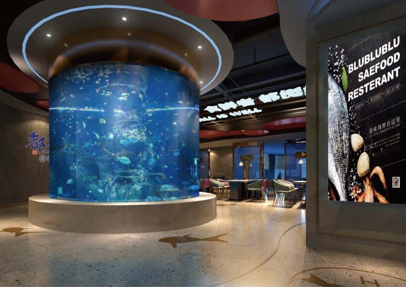 外觀上,藍(lán)色主調(diào)搭配醒目的大螃蟹圖案,吸引眼球。入口處的海鮮展示缸,直觀展現(xiàn)食材新鮮度。