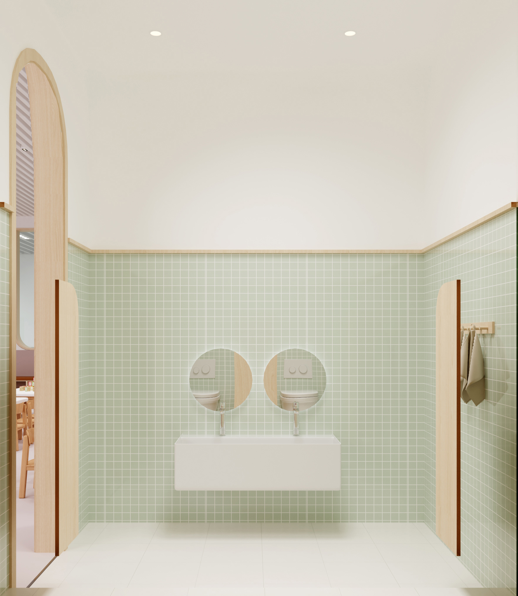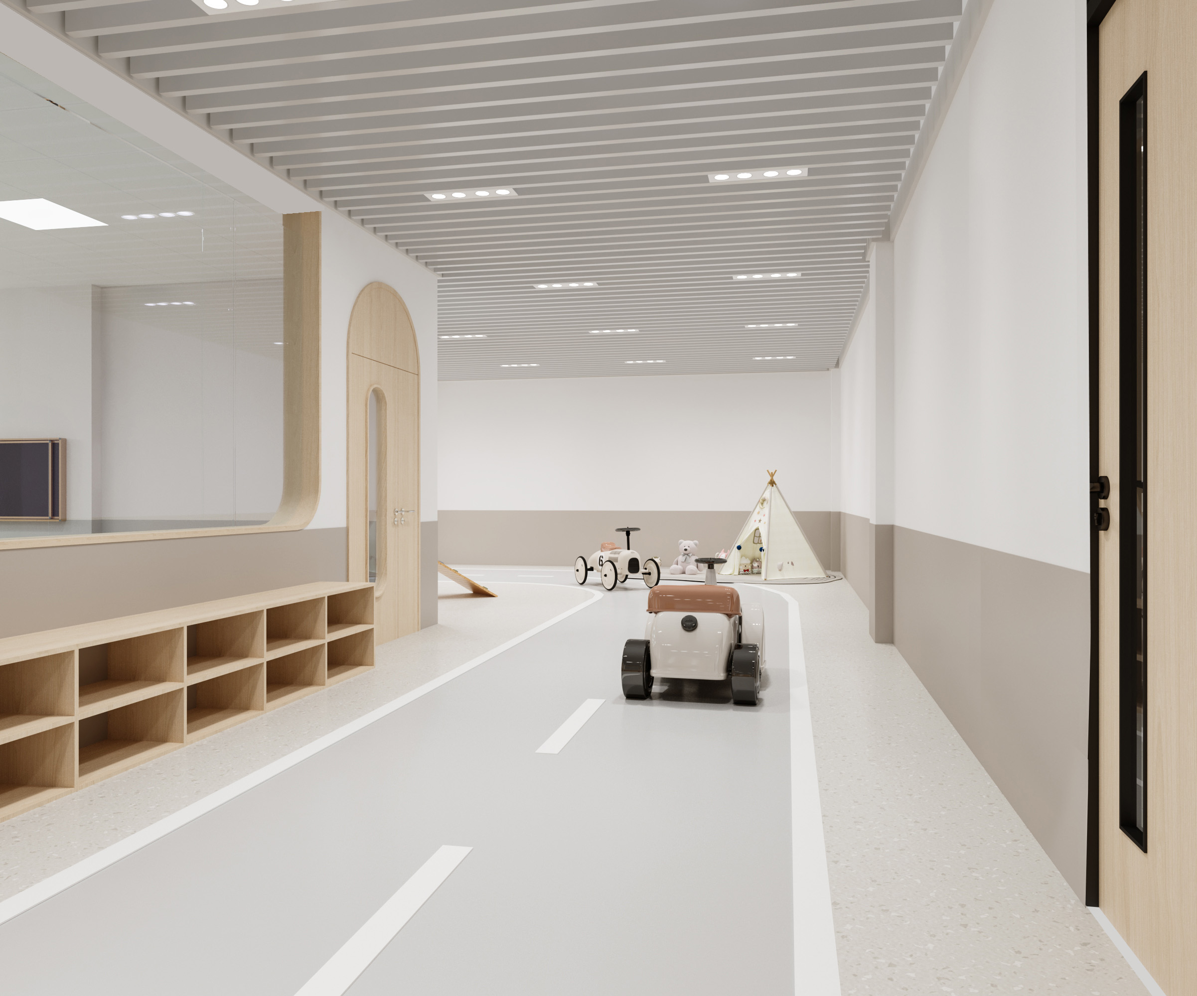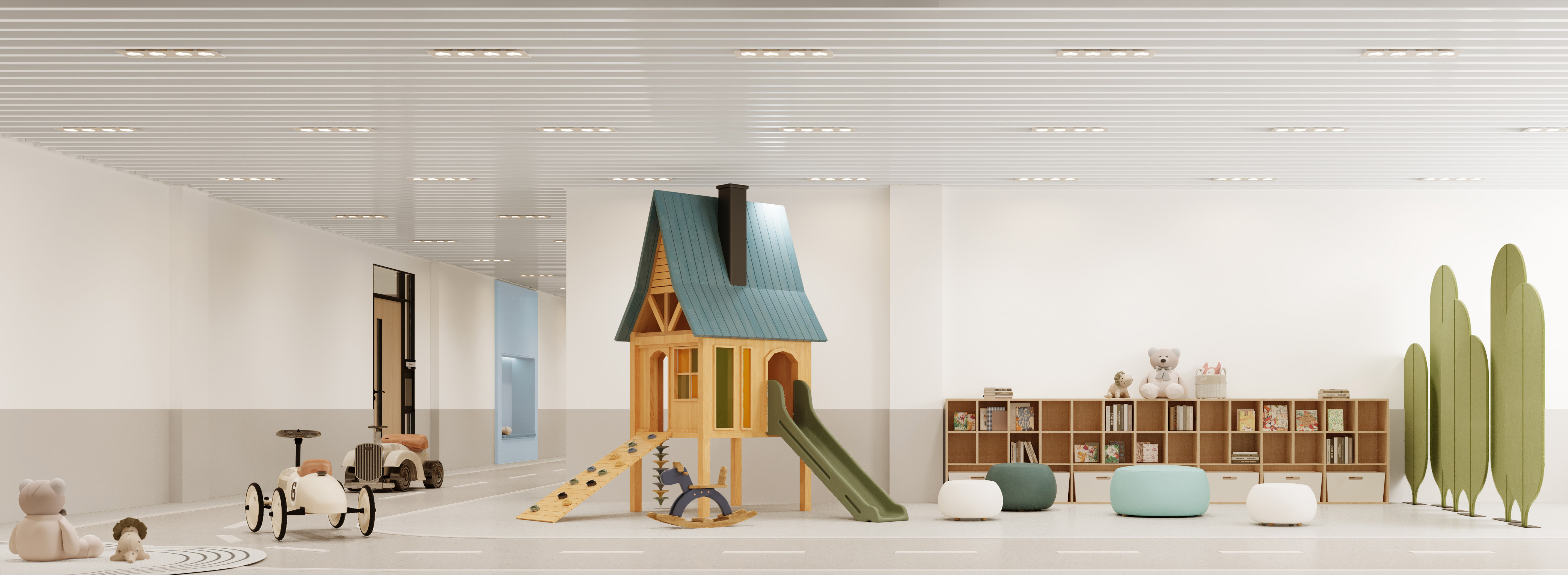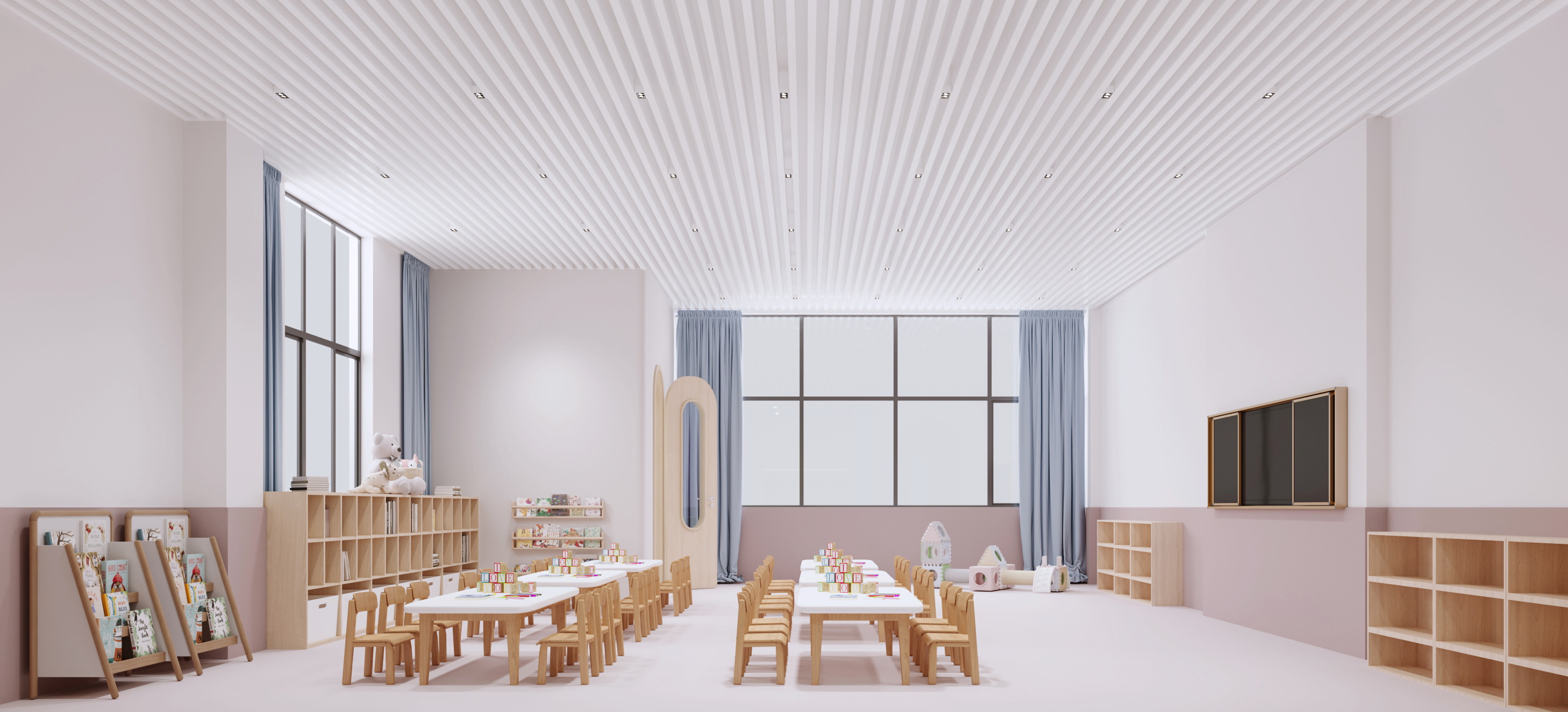 該學(xué)校設(shè)計(jì)圍繞 “助力成長(zhǎng),融合美學(xué)與功能” 展開(kāi)。外觀上,建筑風(fēng)格典雅,紅頂白墻搭配大面積玻璃,兼具美觀與采光性,周邊運(yùn)動(dòng)場(chǎng)地滿足體育教學(xué)。室內(nèi)大廳以大理石地面、木質(zhì)墻面營(yíng)造大氣莊重感,學(xué)校標(biāo)識(shí)醒目。幼兒活動(dòng)區(qū)采用柔和色調(diào)與圓潤(rùn)造型,搭配童趣設(shè)施,激發(fā)孩子探索欲。衛(wèi)生間用清新綠瓷磚與木質(zhì)隔斷,安全又舒適。運(yùn)動(dòng)場(chǎng)館色彩明快,專業(yè)場(chǎng)地設(shè)計(jì)保障運(yùn)動(dòng)需求。整體空間既符合教育功能,又通過(guò)溫馨、活力的設(shè)計(jì),為師生打造優(yōu)質(zhì)學(xué)習(xí)生活環(huán)境。