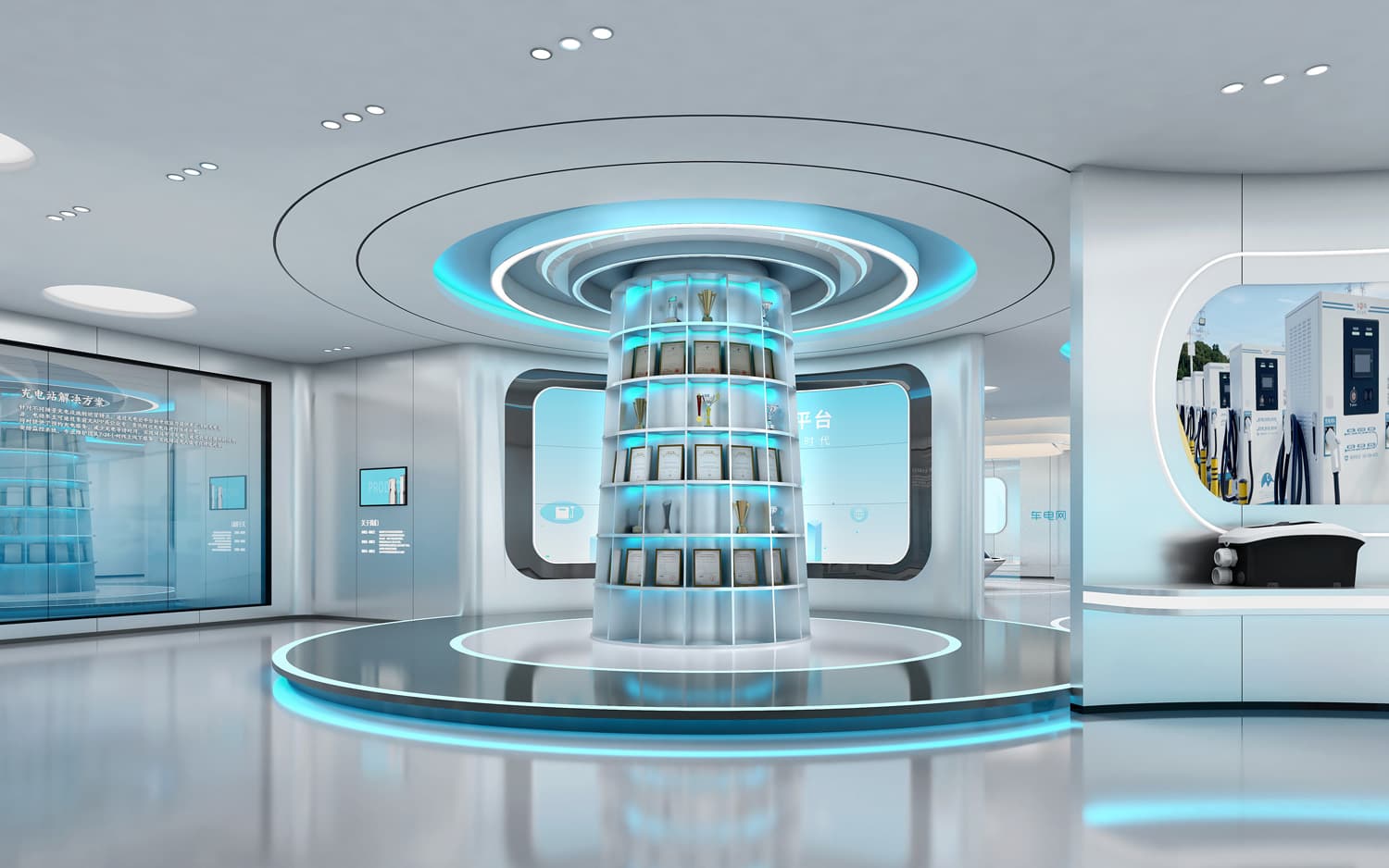 設(shè)計(jì)理念:本案設(shè)計(jì)區(qū)域通過(guò)現(xiàn)代與科技的設(shè)計(jì)手法相結(jié)合,將此元素融匯貫通與整個(gè)空間設(shè)計(jì),技展廳素來(lái)以創(chuàng)意設(shè)計(jì),結(jié)合現(xiàn)代化展示設(shè)備,給參觀者帶來(lái)身臨其境的非凡體驗(yàn)??萍颊箯d展品豐富,通過(guò)互動(dòng)性游戲、科普類影視劇作品等巧妙設(shè)計(jì),給參觀者帶來(lái)一段樂(lè)趣非凡的探索之旅技有機(jī)融合。