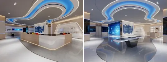 公司大門簡潔大氣,弧形設計與直線條結合,彰顯現(xiàn)代感與穩(wěn)重。大堂以金色為主調(diào),搭配綠植與藝術裝置,營造出高端且富有生機的氛圍。接待室布置舒適沙發(fā)與精致裝飾,營造溫馨洽談環(huán)境。會議廳整齊排列座椅,簡潔實用,滿足會議需求。展廳則運用流線型元素與科技感燈光,展示產(chǎn)品與企業(yè)形象,增強互動體驗。整體設計風格統(tǒng)一,既體現(xiàn)企業(yè)實力與專業(yè)性,又融入人文關懷與現(xiàn)代科技元素,打造舒適且富有魅力的企業(yè)空間。
