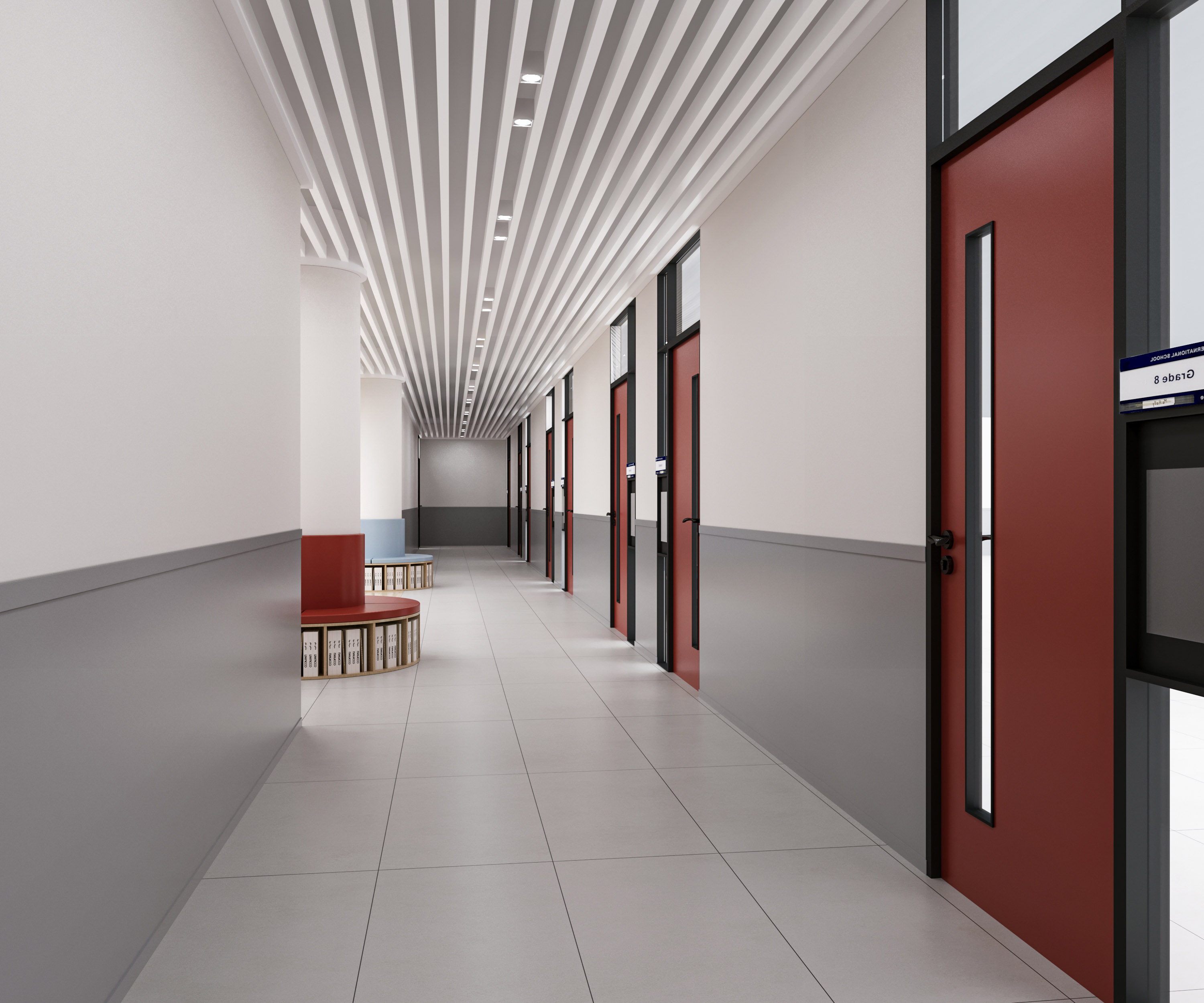 該學(xué)校設(shè)計(jì)圍繞 “助力成長(zhǎng),融合美學(xué)與功能” 展開(kāi)。外觀上,建筑風(fēng)格典雅,紅頂白墻搭配大面積玻璃,兼具美觀與采光性,周邊運(yùn)動(dòng)場(chǎng)地滿足體育教學(xué)。室內(nèi)大廳以大理石地面、木質(zhì)墻面營(yíng)造大氣莊重感,學(xué)校標(biāo)識(shí)醒目。幼兒活動(dòng)區(qū)采用柔和色調(diào)與圓潤(rùn)造型,搭配童趣設(shè)施,激發(fā)孩子探索欲。衛(wèi)生間用清新綠瓷磚與木質(zhì)隔斷,安全又舒適。運(yùn)動(dòng)場(chǎng)館色彩明快,專業(yè)場(chǎng)地設(shè)計(jì)保障運(yùn)動(dòng)需求。整體空間既符合教育功能,又通過(guò)溫馨、活力的設(shè)計(jì),為師生打造優(yōu)質(zhì)學(xué)習(xí)生活環(huán)境。